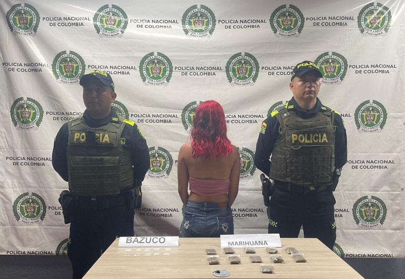 La capturada, junto con la sustancia incautada, fue dejado a disposición de la Fiscalía General de la Nación por el delito de fabricación, tráfico o porte de estupefacientes.