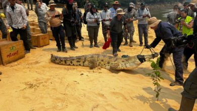 Caimanes llaneros de regreso a su hábitat natural en aeronave de la Fuerza Aérea Colombiana