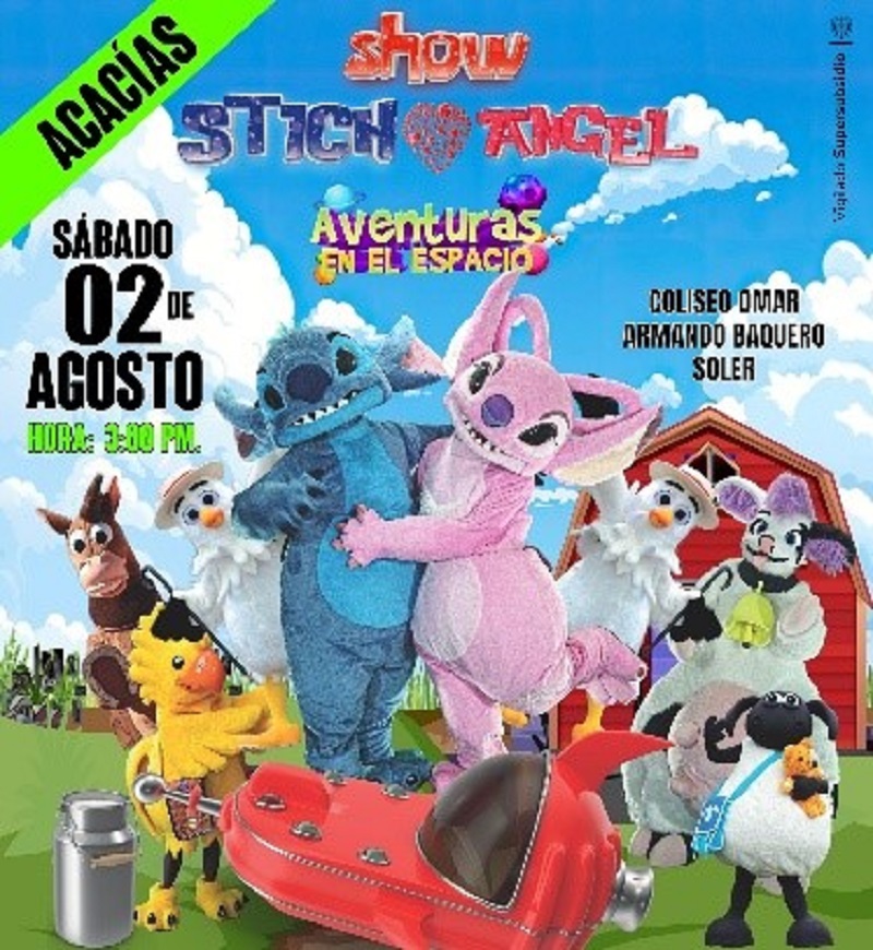 Viva la obra de teatro musical en el ‘Show Stich and Ángel Aventuras en el Espacio’, y distráigase en el evento que contará con animación, disc jockey y concursos en tarima.