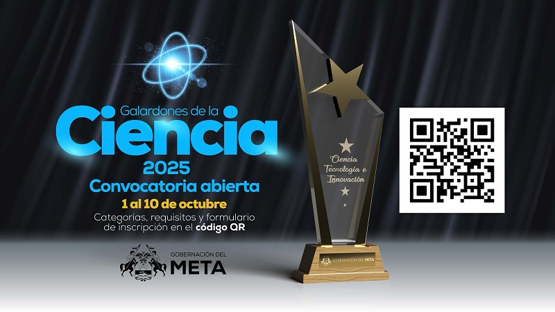 La Gobernación del Meta anuncia que entre el 1 y el 10 de octubre de 2025 estarán abiertas las postulaciones a los Galardones de Ciencia, Tecnología e Innovación, reconocimiento institucional creado mediante el Decreto 377 de 2022, el cual busca exaltar a los actores que con su trabajo, dedicación y constancia han contribuido al desarrollo científico, tecnológico y de innovación en el departamento.