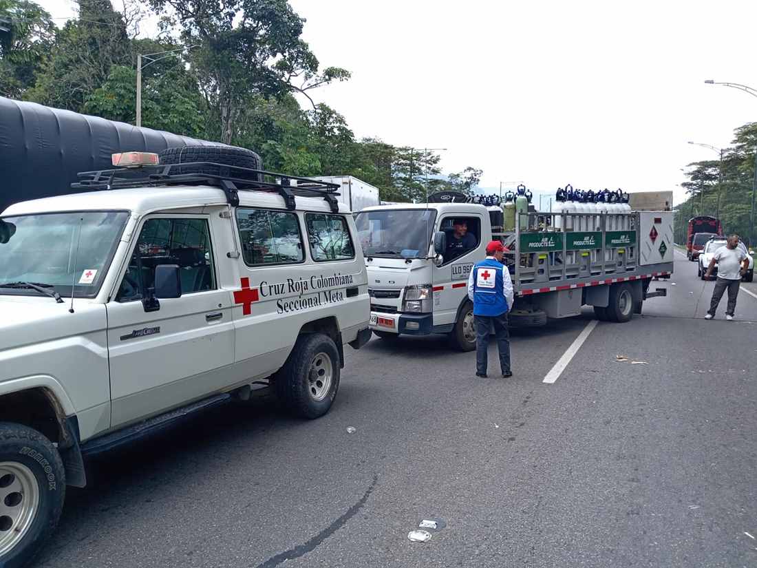 A través de la Dirección de Gestión del Riesgo de Desastres de la Cruz Roja Colombiana Seccional Meta, se coordinaron acciones con los líderes del paro de transportadores de carga que se encuentran en el sector de Llano Lindo, para que permitieran la movilización de un vehículo que transportaba oxígeno que estaba en la caravana y llevarlo finalmente a la Clínica Meta.