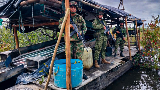 Maquinaria y equipos que eran utilizados para la extracción ilícita de yacimientos mineros en el departamento de Guainía, fueron inutilizados por la Armada de Colombia, el Ejército Nacional, la Fuerza Aérea y la Policía Nacional, en articulación con otras autoridades departamentales, durante el desarrollo de operaciones ofensivas contra las estructuras ilegales responsables de la afectación a los recursos naturales del país.