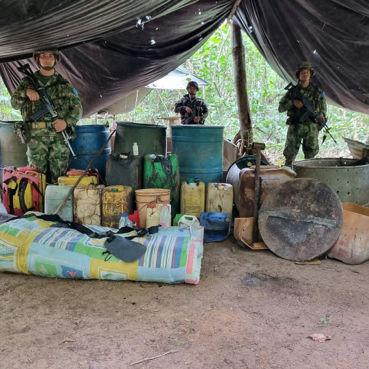 Batallón de Operaciones Terrestres N.° 28, el Batallón de Infantería Motorizado N.° 43 Gr. Efraín Rojas Acevedo, unidades orgánicas de la Vigésima Octava Brigada del Ejército Nacional y la Fuerza Aérea Colombiana, en los últimos días,  ubican y destruyen tres laboratorios para el procesamiento de pasta base de coca.