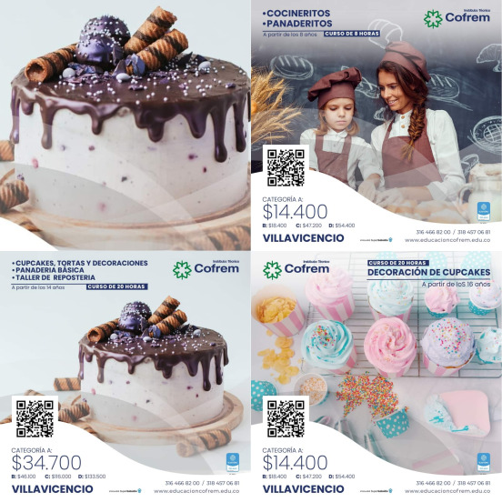 A partir de 14 años de edad, también pueden participar en el curso donde se enseñará la técnica y el adecuado proceso de preparación de ‘Cupcakes, Tortas y Decoraciones, Panadería Básica, Taller de Repostería’.