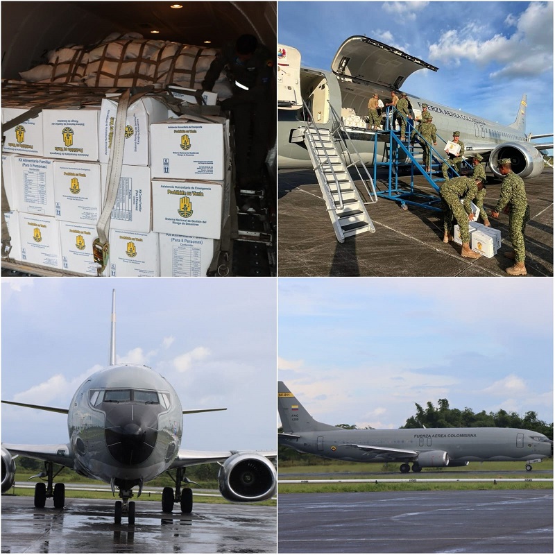 Tras la fuerte ola invernal que atraviesa el departamento de Guanía, declarado en alerta roja por inundaciones, un avión C-40 de la Fuerza Aeroespacial Colombiana transportó más de 20 toneladas de asistencia humanitaria de emergencia, por requerimiento de la Unidad Nacional de Gestión del Riesgo, UNGRD, para ser entregadas a la población damnificada de esta región.
