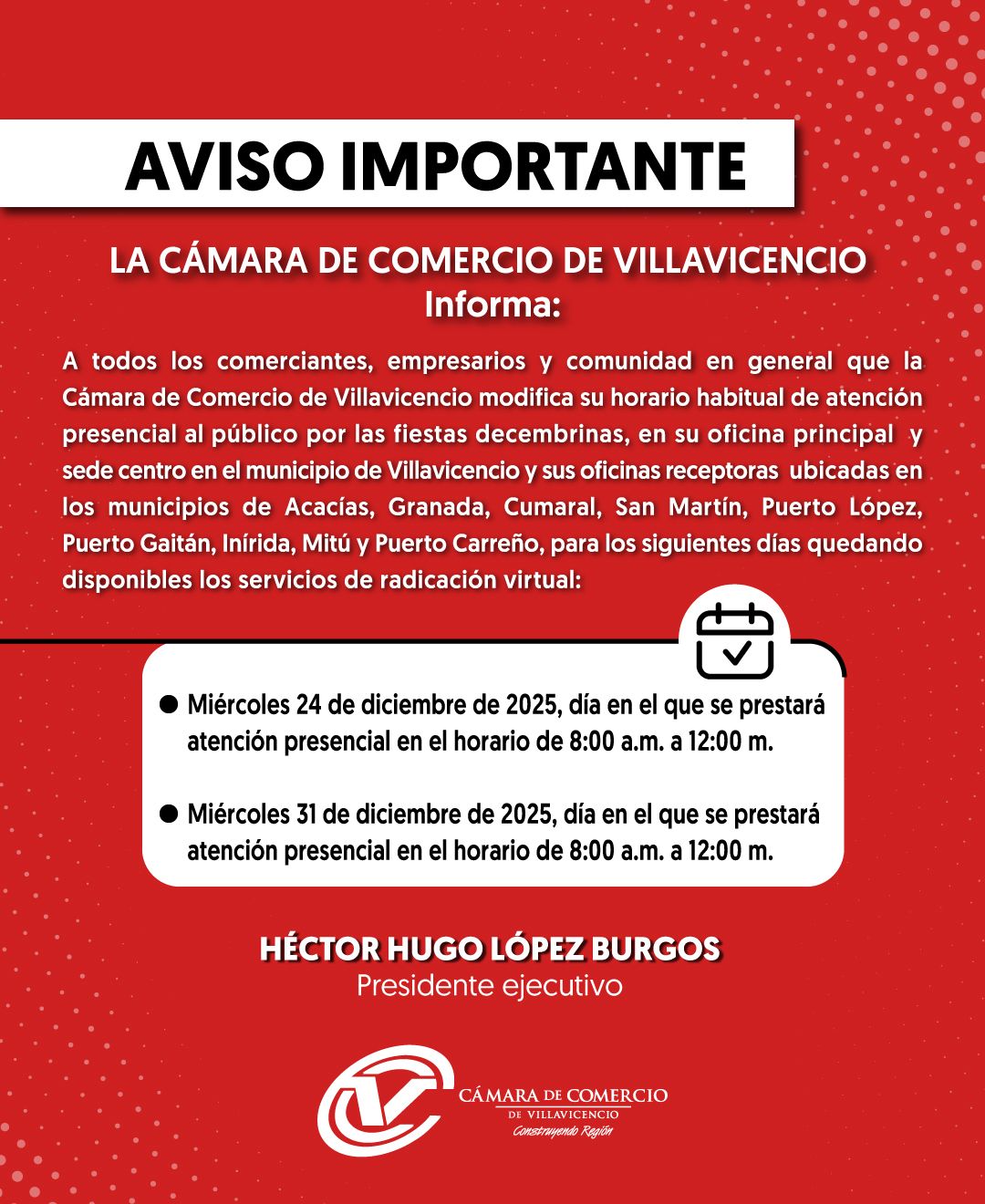 Se le informa a la comunidad que las denuncias pueden realizarse a las líneas 320 301 7870 y 321 394 5422.