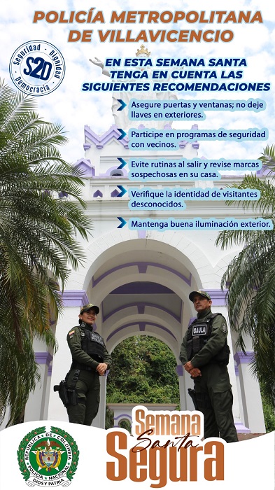 En el marco de la estrategia de prevención y convivencia ciudadana, la Policía Metropolitana de Villavicencio hace un llamado a la comunidad para fortalecer las medidas de autoprotección durante la Semana Santa, especialmente frente al hurto a residencias.