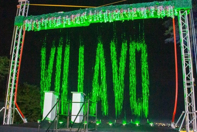 La llamada cortina de agua sorprendió a los asistentes en el Mirador del Cerro El Redentor con un efecto visual que acompañó la inauguración de la iluminación navideña en la capital del Meta.